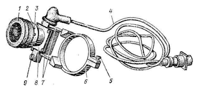 The 1A40 sighting complex includes an additional eyepiece for the gunner's left eye for the UVBU lead calculation system. The new UVBU system is an add-on device that calculates the necessary amount of lead for a moving target and displays it in figures which can be manually applied by the gunner on the lateral scale in the TPD-K1M. The indicator unit, shown below, is comprised of a clamp, the eyepiece, and the connector that is plugged into the TPD-K1M.