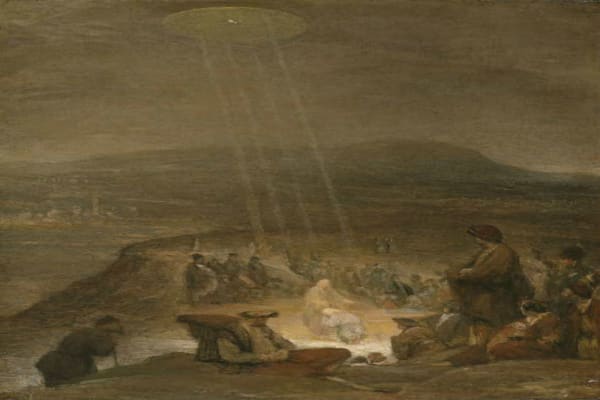 De viccet félre téve, miért tak a művész reneszánsz képre UFO-kat amikhez még oda fest egy nézelődőt is.